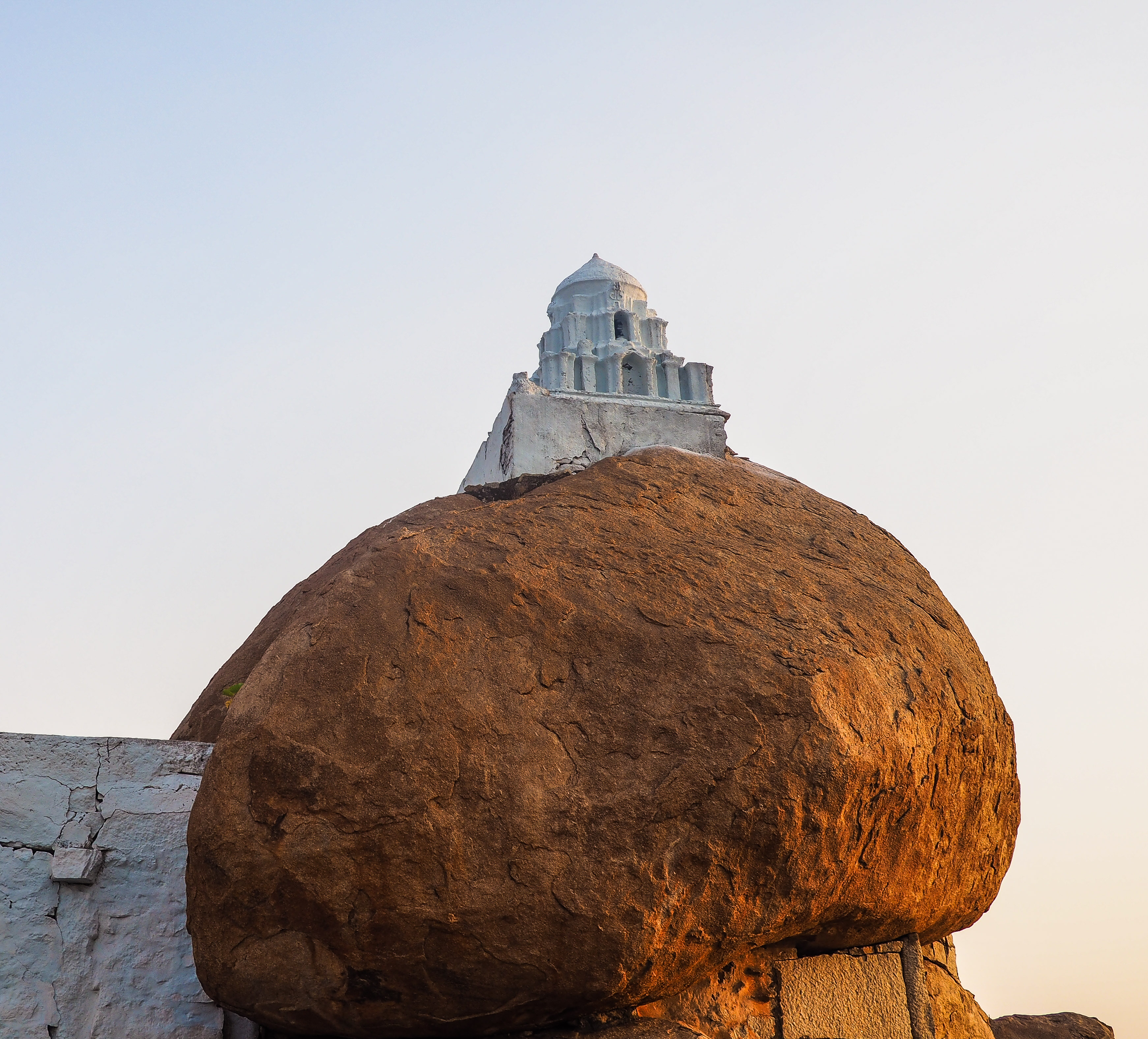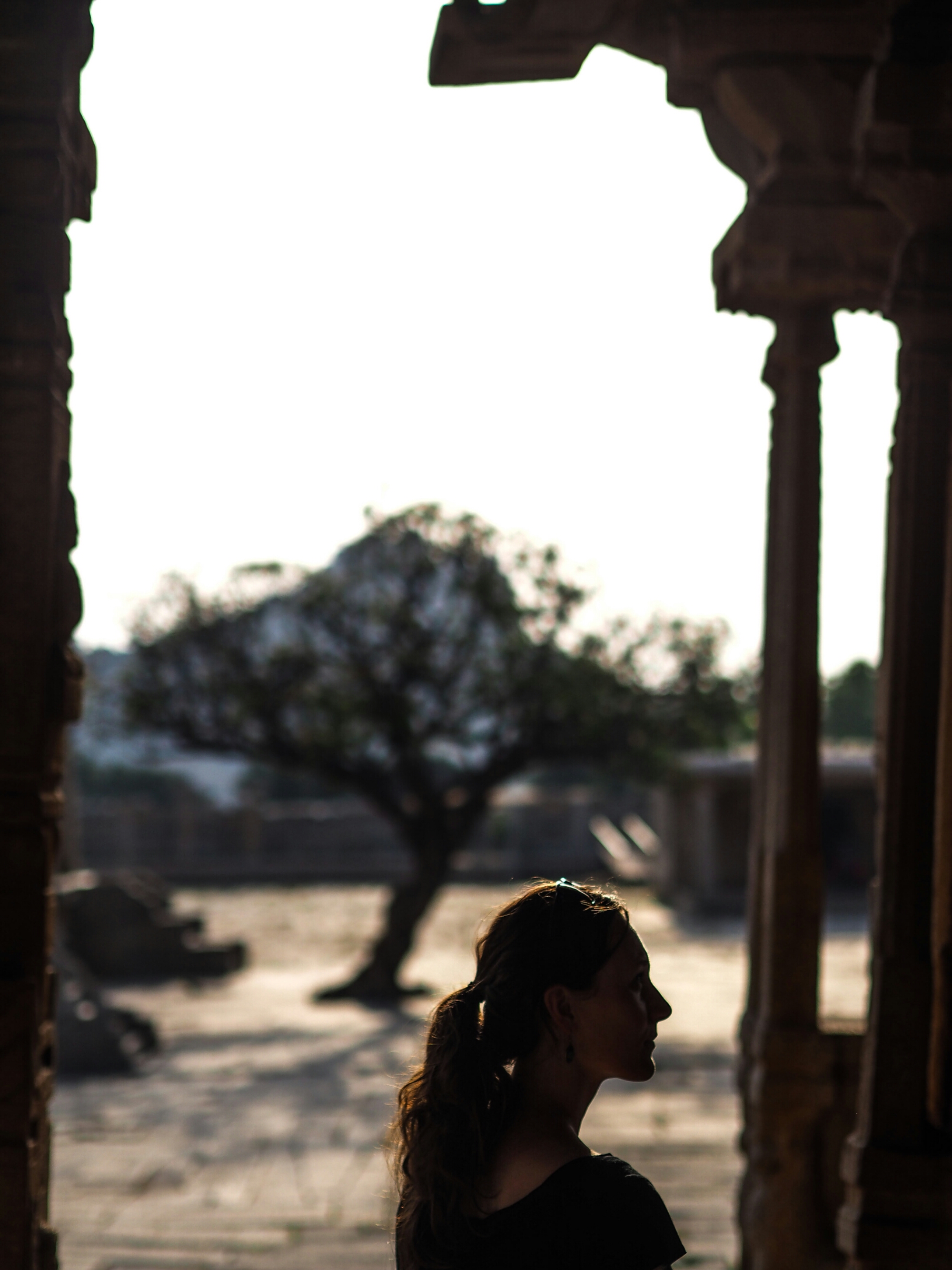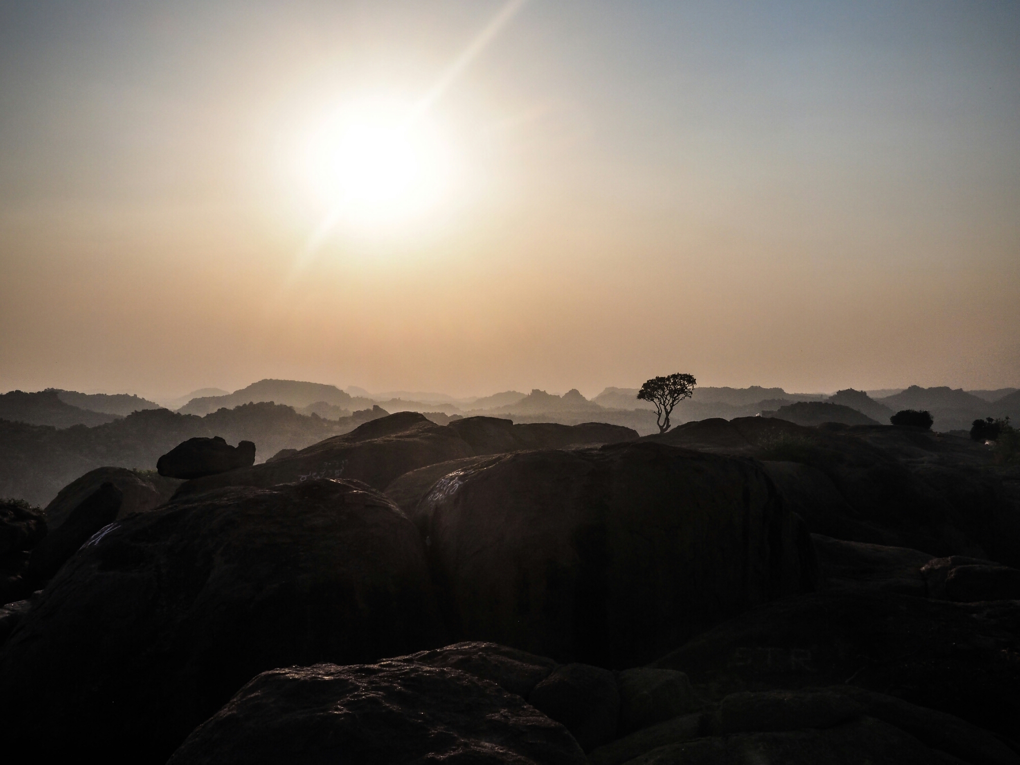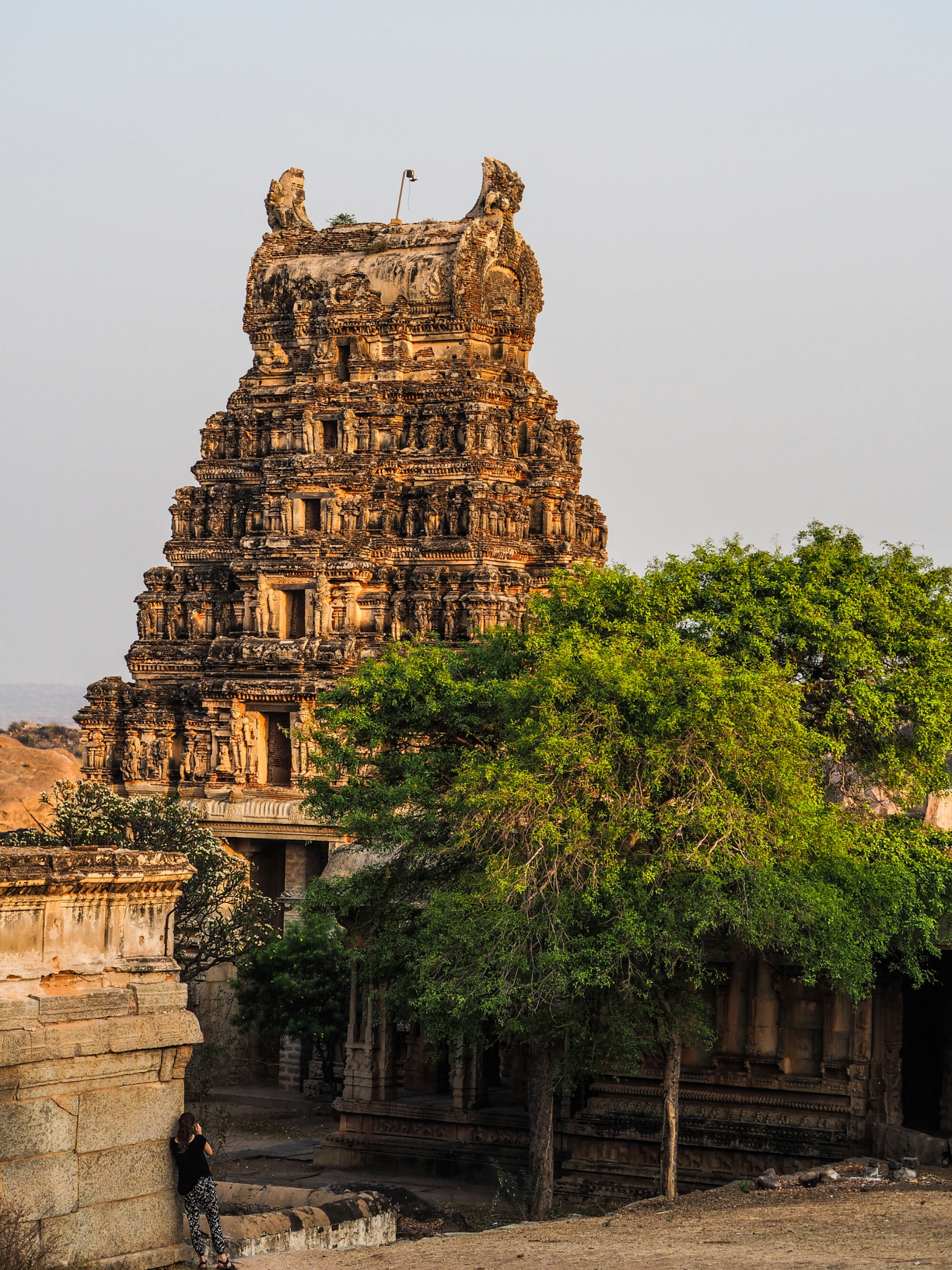 Mijn laatste herinnering van Hampi kleven aan de Monkey Temple. De scooter stond beneden en zonder aarzeling beklommen we de 572 treden. Hanuman, de aap God, moet volgens de legende hier geboren zijn. Het uitzicht was prachtig en de velen apen gaven een extra dimensie aan het geheel. Het beeld van de eenzame boom in de verte met achter haar heuvels, wolken en een ondergaande zon zal me lang bijblijven.