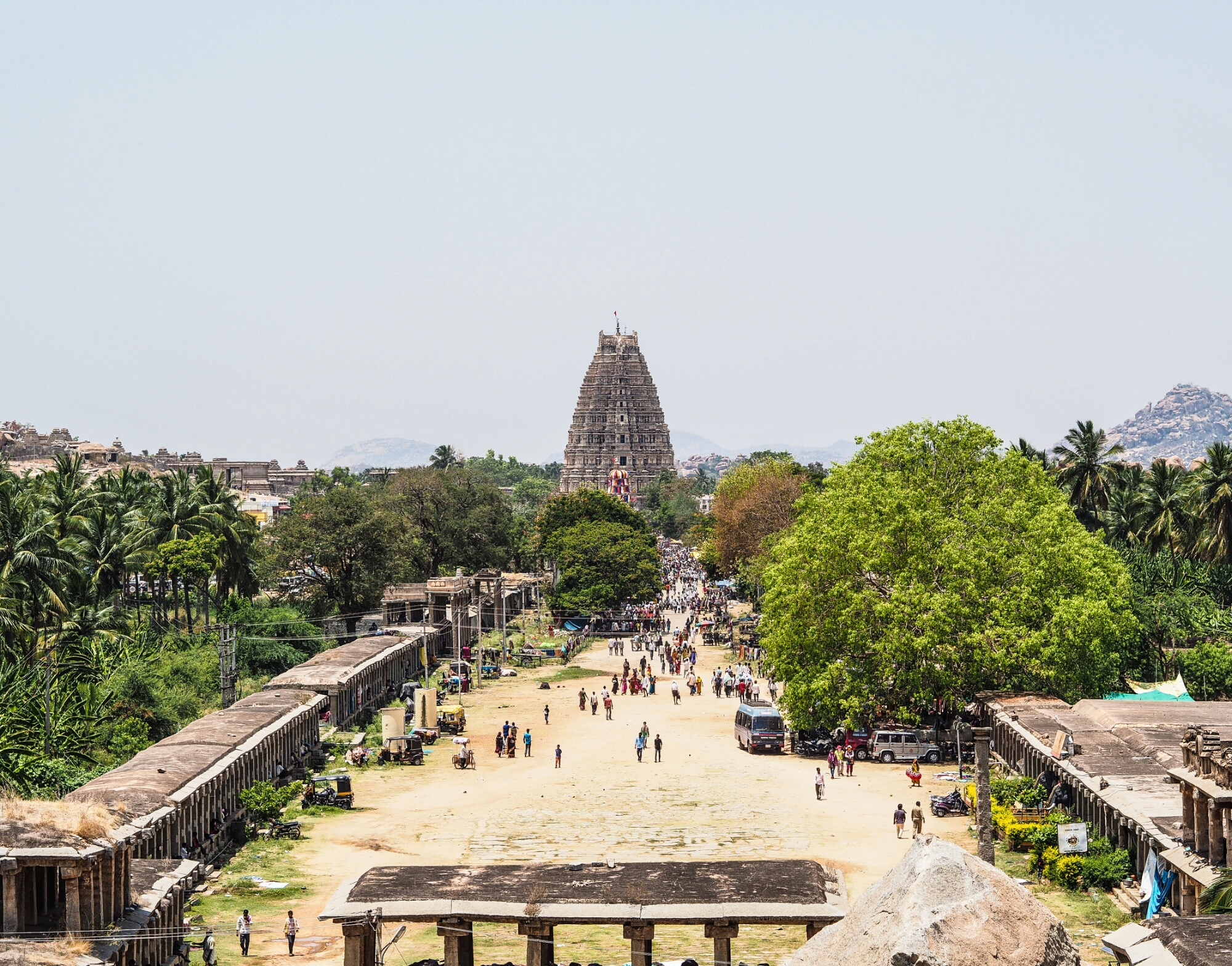 We sliepen op de Hampi bazaar, een levendige mengelmoes van Indiërs, toeristen, hotels en winkeltjes. Deze bijzondere plek was in 1500 het middelpunt van de Vijayanagara empire. Beeld je het volgende in: 500 jaar geleden moesten de mensen zich wassen in het vlakbij gelegen badhuis voordat zij de bazaar mochten betreden. Er werden hier diamanten en goud verkocht, tegenwoordig zijn het verstofte flessen bronwater en goedkope t-shirts. De stad huisde 0.1% van de wereldpopulatie en was daarmee de tweede grootste stad in de wereld. Nu zijn het er 6000 die vooral inkomsten genereren uit mensen zoals ik, de toerist.