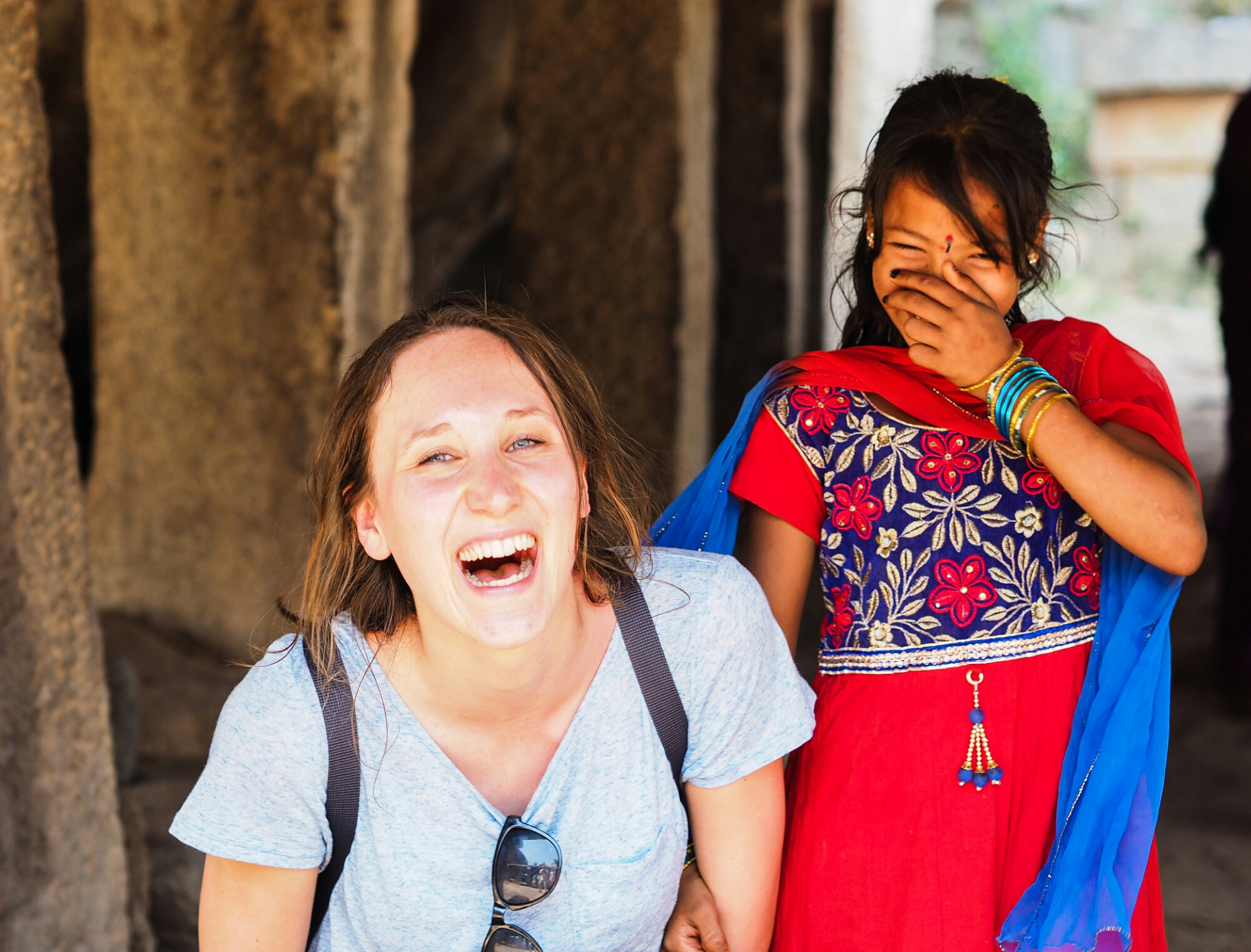 Volgens de Lonely Planet kost het maanden om alle overgebleven tempels van het Vijayanagara tijdperk te bezoeken, iets dat wij dan ook niet van plan waren. Op de dag dat we het Disneyland-landschap toch een waardig bezoek gingen brengen, werden we overweldigd met cultuur en Indiërs. Bij een tempel die nog in gebruik was, werden we warm onthaald. Bij elke Indiër die met Wietske of mij op de foto wilde, vroeg ik diegene om ook voor mijn lens te poseren. Zodoende kan ik de kunst van de portretfotografie onder de knie krijgen. De gemiddelde Indiase man en vrouw is trouwens ontzettend fotogeniek.