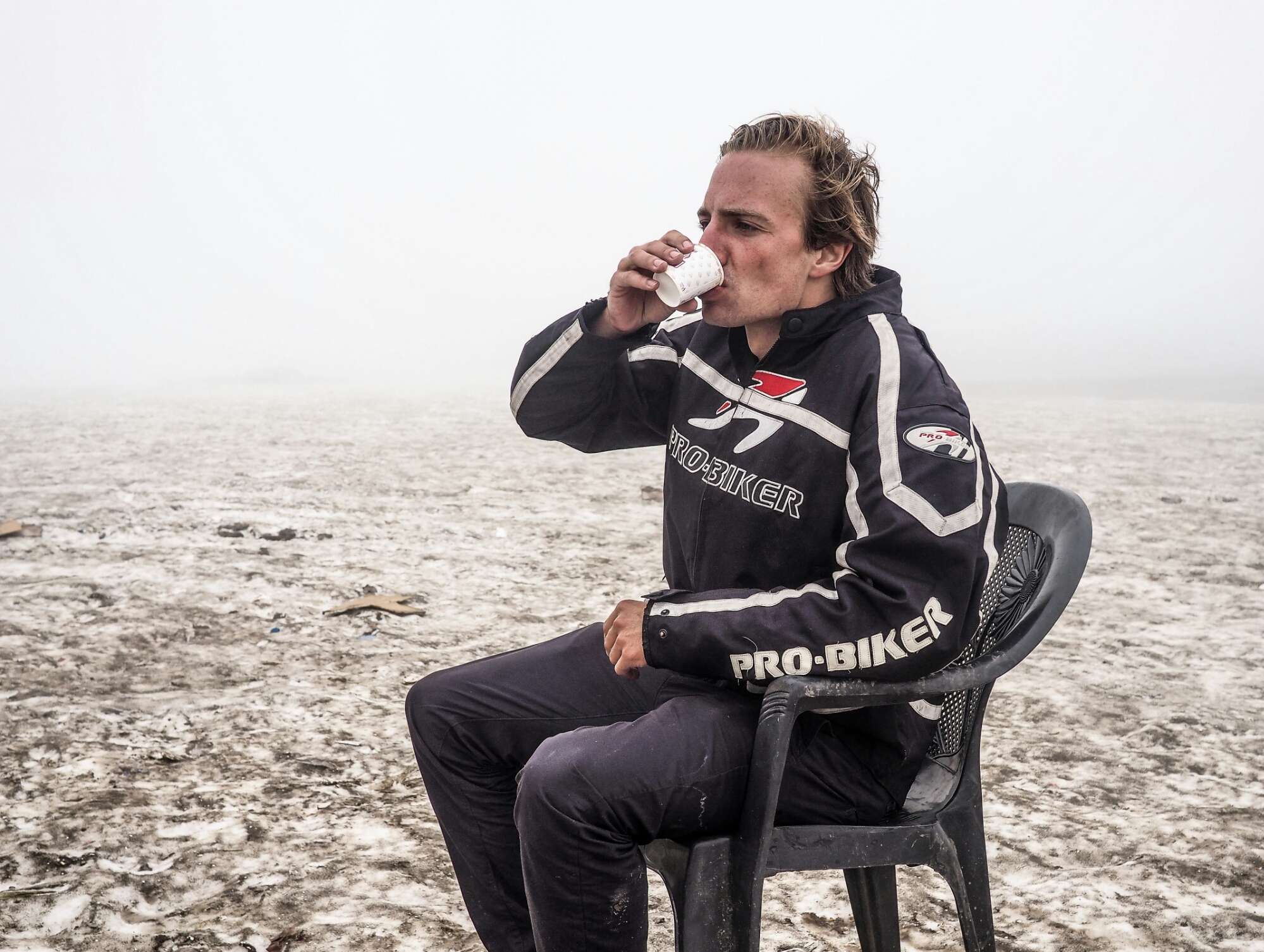 De gameboy van mijn buurman was inmiddels leeg en de bus reed een kiezelstenen parkeerplaats op. Buiten stond ik in mijn T-shirt naast slaperige jassen te wachten op mijn backpack. De jongen met de tattoos en het lange haar kroop ineen van de kou, hij had net als ik ook geen jas of trui. De zon moest nog komen en de ochtenddauw hing als een koude deken boven de grond. De situatie deed me kort denken aan het straatbeeld in Nederland, ergens in de maand maart. Op deze dagen maakt de temperatuur zulke sprongen dat velen geen idee hebben wat ze aan moeten trekken. Dan lopen de dikke winterjassen naast de T-shirts op de stoep. Iedereen begrijpt dat één van de twee verloren heeft.